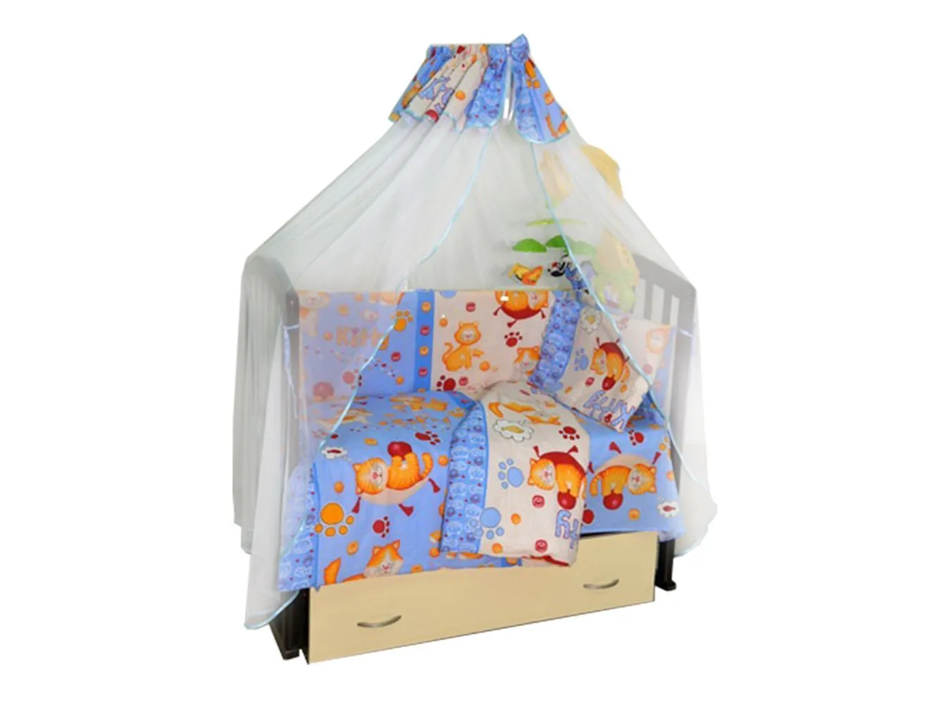 Наполнитель: подушка, одеяло - силиконизированное волокно, борт - синтепон